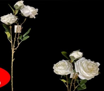 Haste com 3 rosas artificiais permanentes, realistas e sofisticadas. Ideal para arranjos florais, decoração de ambientes ou composição de buquês.